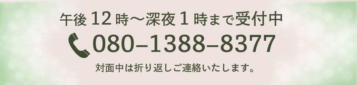 🍀当サイトは24時間通話料無料に加入しております。かけ放題にご加入でない方は、折り返しのお電話をおかけします。